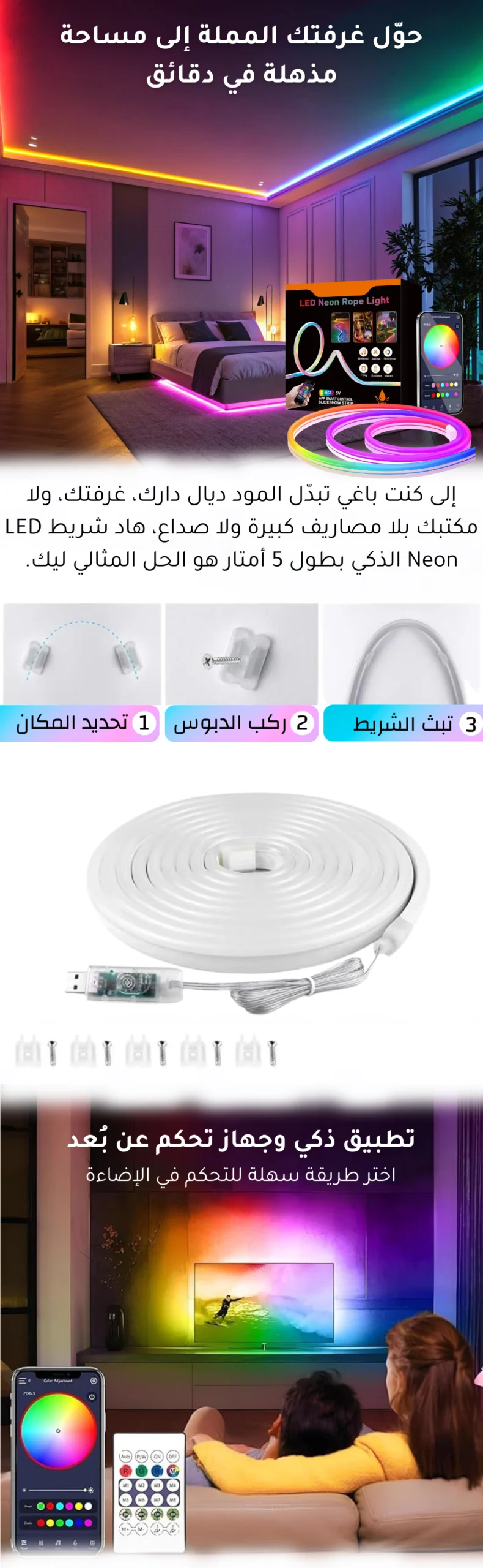 | شريط إضاءة نيون ذكي | 1 د.م. |